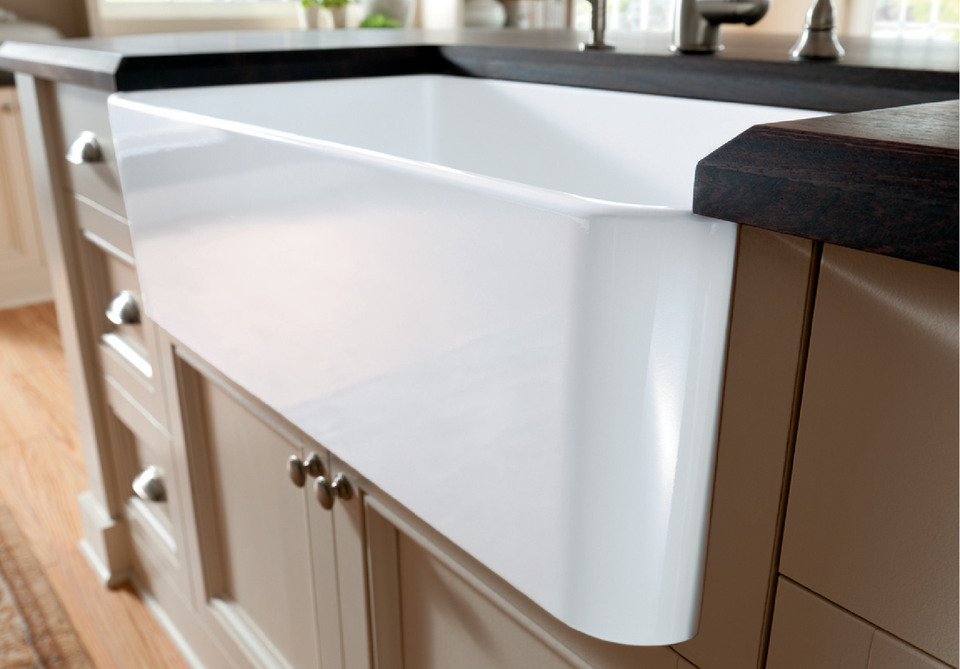 - Contemporary farmhouse style with an ultra-durable apron front